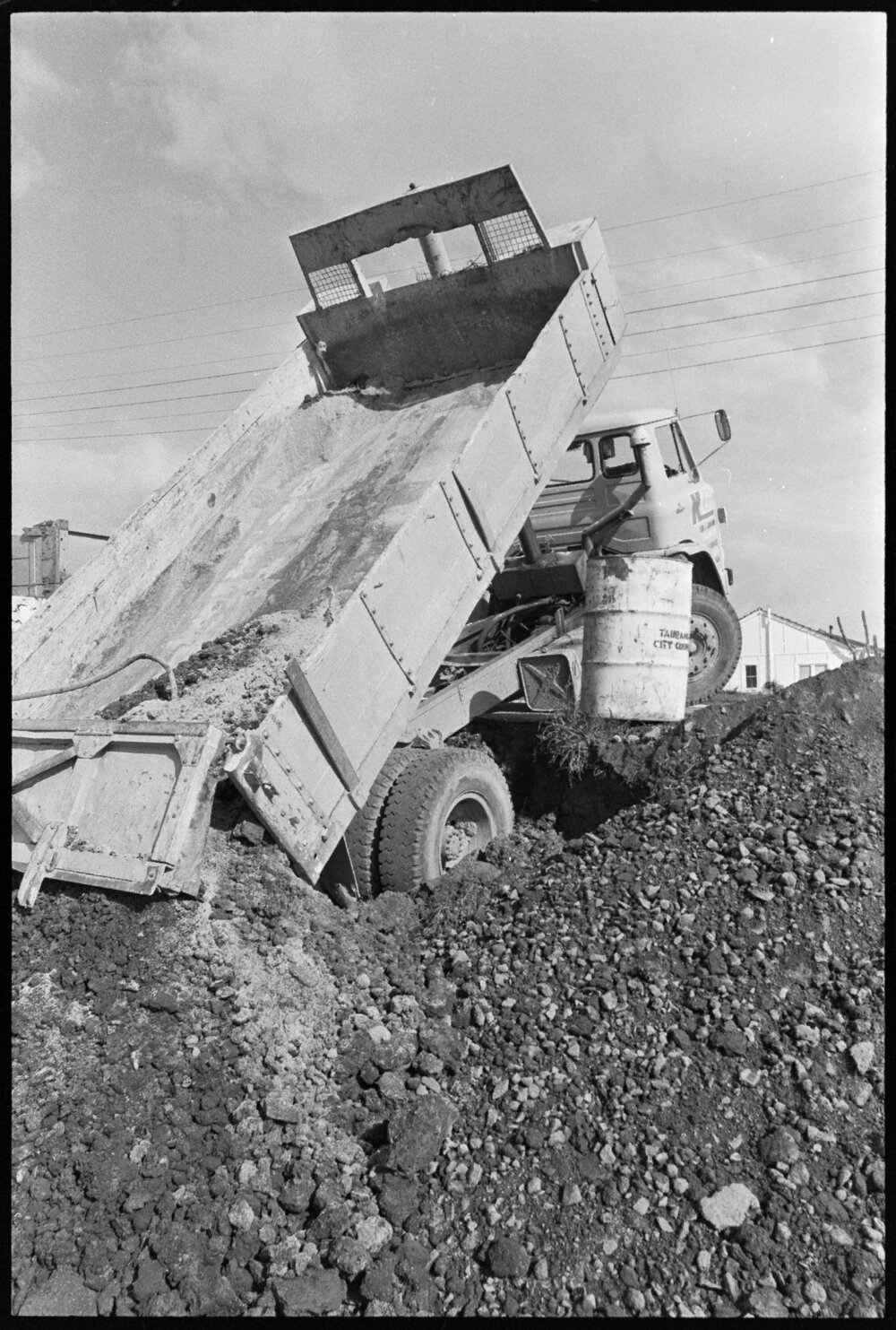 Date11 October 1974Reference Numberphoto gcc-25905DescriptionRoad side collapses during roadworks project. Not published.FormatNegativePhysical Description35mm black-and-white negative (2/6)Photographer/CreatorBay of Plenty Times