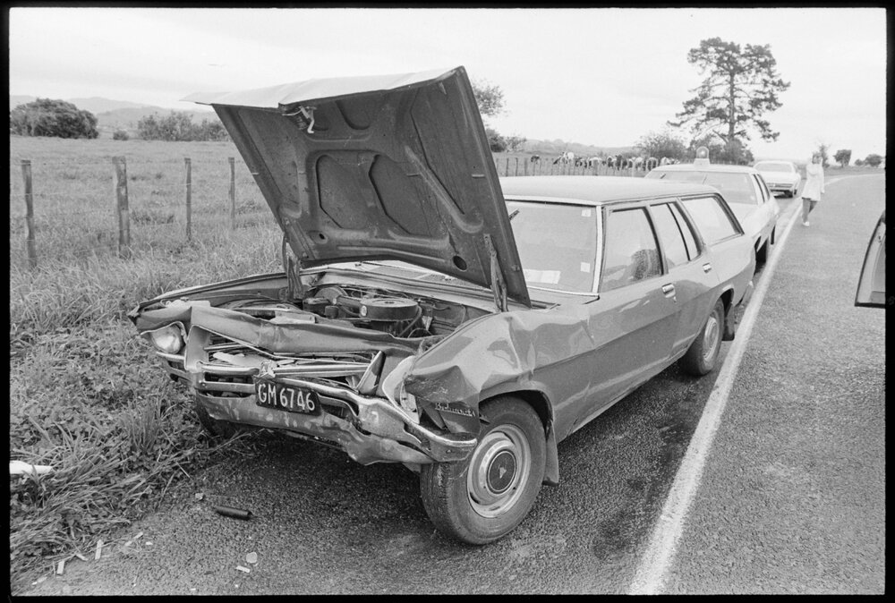 Date18 October 1974Reference Numberphoto gcc-26086DescriptionTwo cars collided on the Tauranga - Te Maunga highway. Published 19 October 1974.FormatNegativePhysical Description35mm black-and-white negative (2/3)Photographer/CreatorBay of Plenty Times