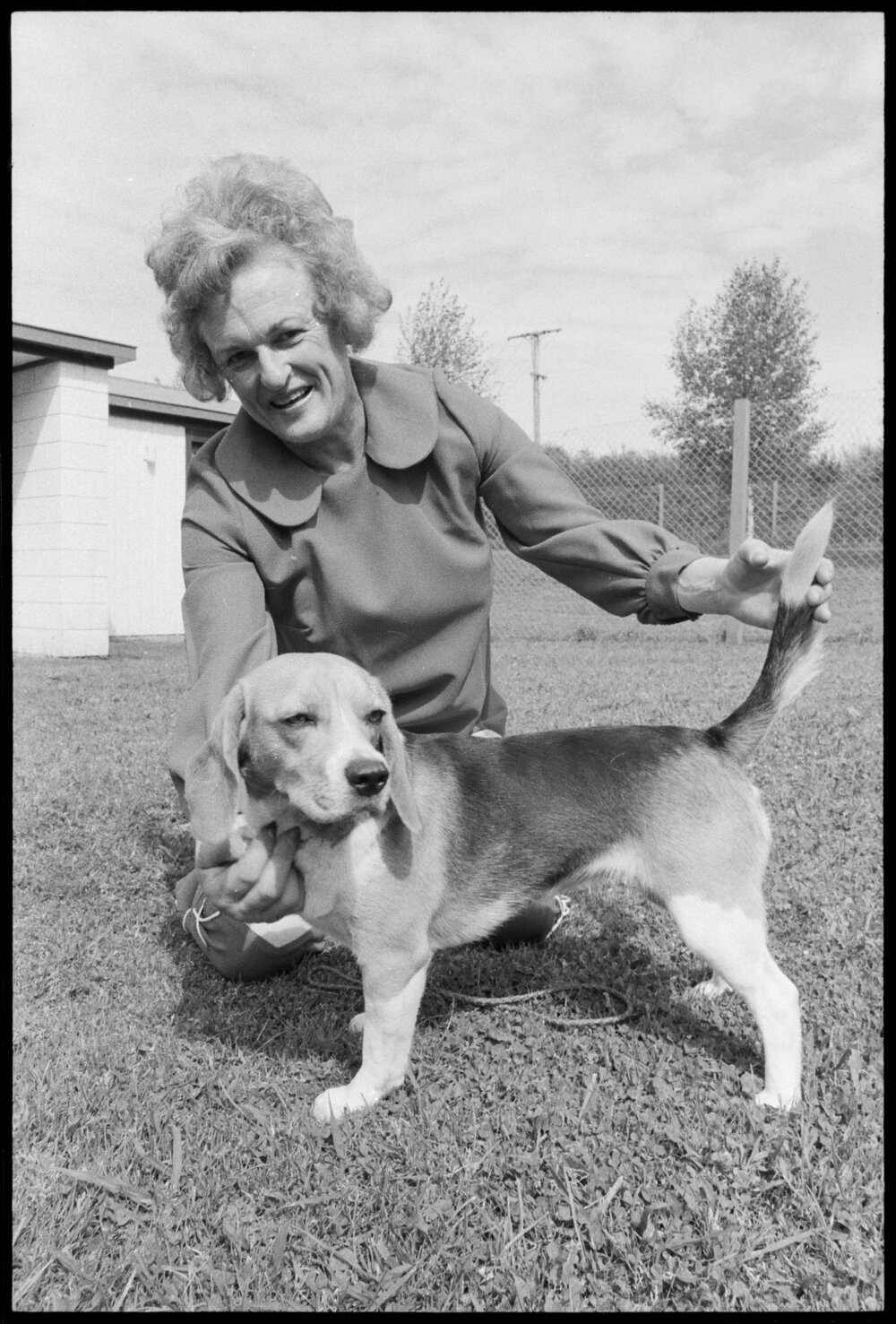 Date23 October 1974Reference Numberphoto gcc-26180DescriptionAllinsmore Arkansas Sam stands almost at attention for his owner and breeder Miss R. Pateshall-Jones, of Te Puna, who took him to the National Dog Show at Hamilton in July, where he won the title of 'Best Baby Hound Puppy', at the age of eight months. Published 23 October 1974.FormatNegativePhysical Description35mm black-and-white negative (6/18)Photographer/CreatorBay of Plenty Times