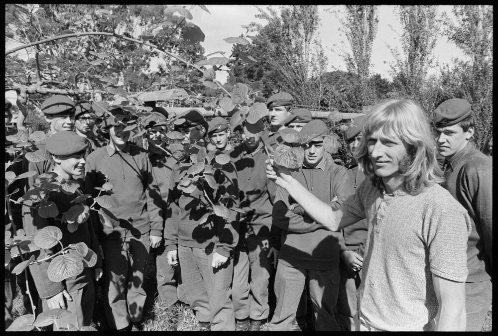 Date23 October 1974Reference Numberphoto gcc-26193DescriptionKiwifruit vines at Puna Orchards, Ltd., are shown to a group of students from the Regular Force Cadets School at Waiouru, by Mr B. Earp. The students, aged between 15 and 18, visited the orchards as part of a three-day geography field trip to help them with revision for School Certificate examinations. The group had also visited Tūrangi, Taupō, Wairākei, Whakamaru and Tokoroa, and were to visit Kinleith on their way back to Waiouru. Published 23 October 1974.FormatNegativePhysical Description35mm black-and-white negative (1/5)Photographer/CreatorBay of Plenty Times