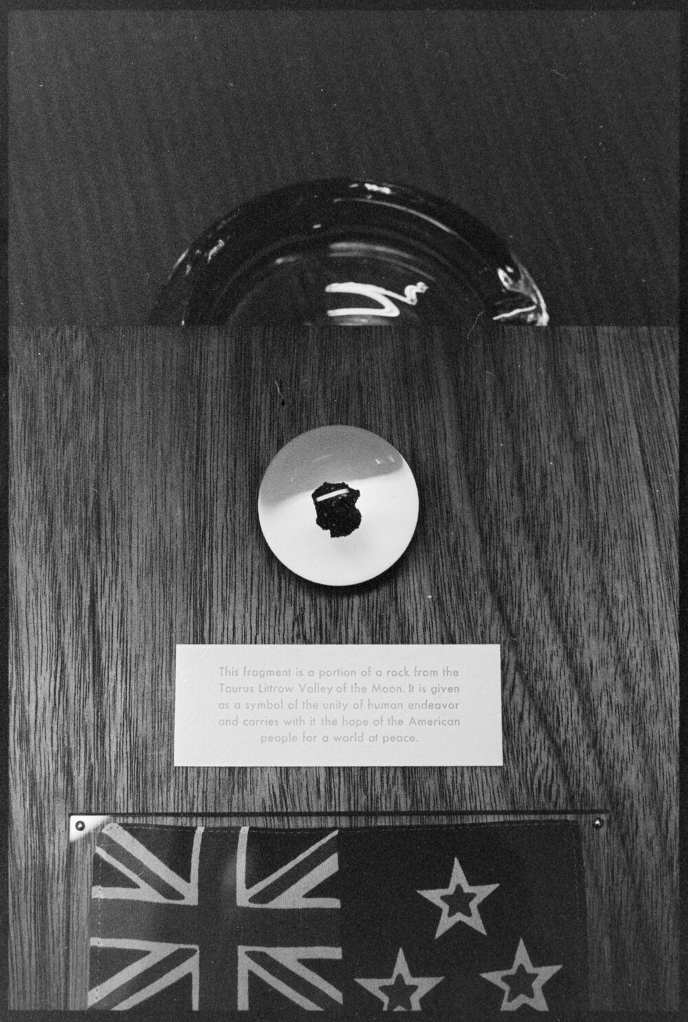 Date25 October 1974Reference Numberphoto gcc-26244DescriptionThis tiny sample of moon rock, displayed on a plaque, with a New Zealand ensign carried on one of the United States moon exploration voyages, will take pride of place in the Tauranga Rock and Mineral Club's Labour Weekend display at Mount Maunganui. Seen here with the exhibit are Messrs J. C. Beauchamp, the manager of the Mount Branch of the Bay of Plenty Savings Bank, where the rock has been held for security, and A. E. Mathews, the club president. Published 25 October 1974.FormatNegativePhysical Description35mm black-and-white negative (2/6)Photographer/CreatorBay of Plenty Times