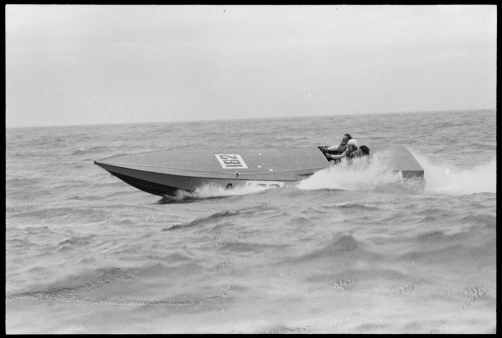 Date25 October 1974Reference Numberphoto gcc-26265DescriptionCompeting boat in the class A in the 100-mile power run in the Tauranga Harbour on Saturday. Published 25 October 1974.FormatNegativePhysical Description35mm black-and-white negative (2/3)Photographer/CreatorBay of Plenty Times