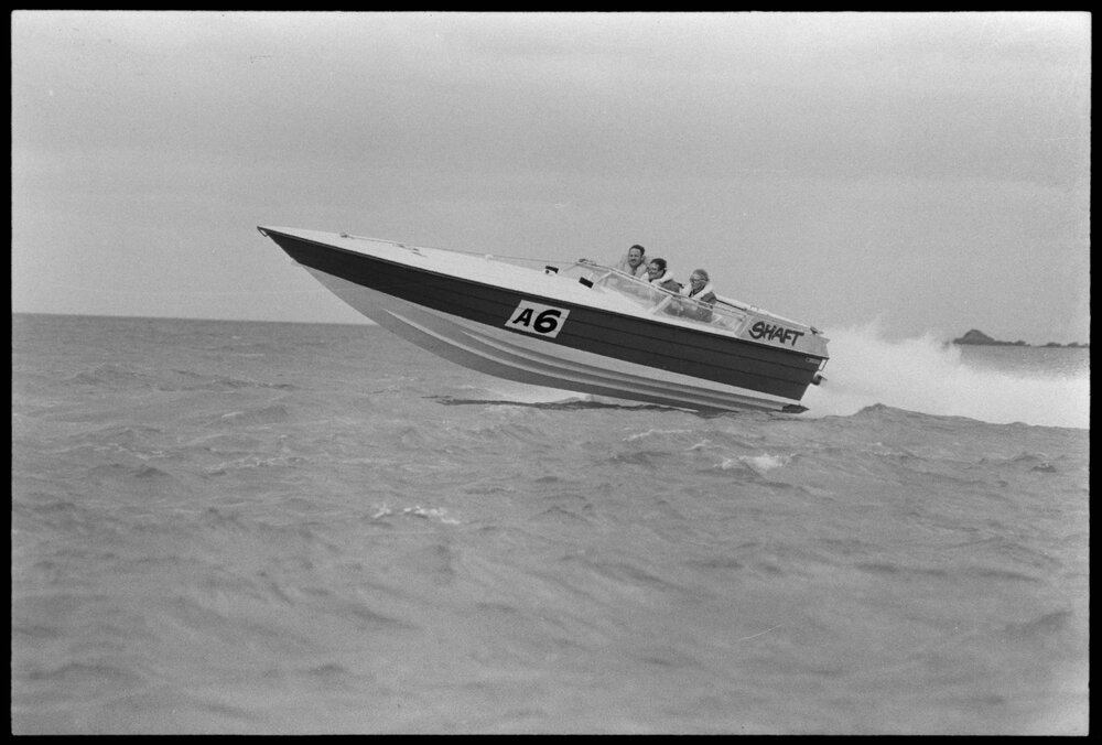Date26 October 1974Reference Numberphoto gcc-26272DescriptionCompeting boat in the class A in the 100-mile power run in the Tauranga Harbour on Saturday. Published 25 October 1974.FormatNegativePhysical Description35mm black-and-white negative (3/3)Photographer/CreatorBay of Plenty Times