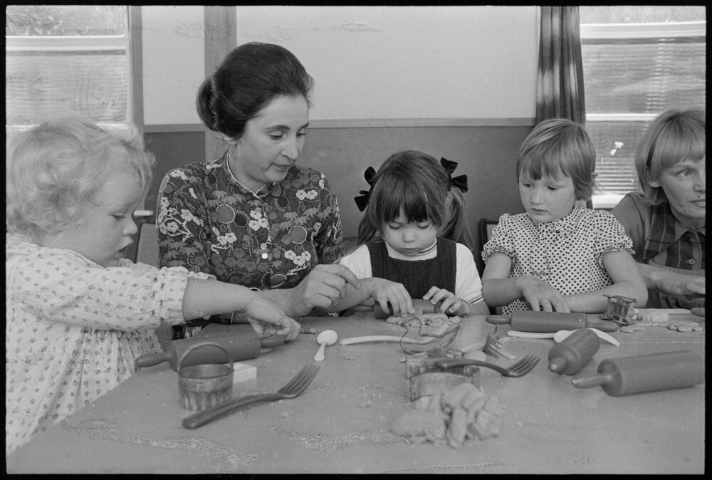 Date26 October 1974Reference Numberphoto gcc-26279DescriptionSitting down for a good talk at the Holy Trinity Church creche in Devonport Road are (from left): Louise (2), Mrs Jennifer Lord and Nicola (3). Published 26 October 1974. Published 26 October 1974.FormatNegativePhysical Description35mm black-and-white negative (7/9)Photographer/CreatorBay of Plenty Times