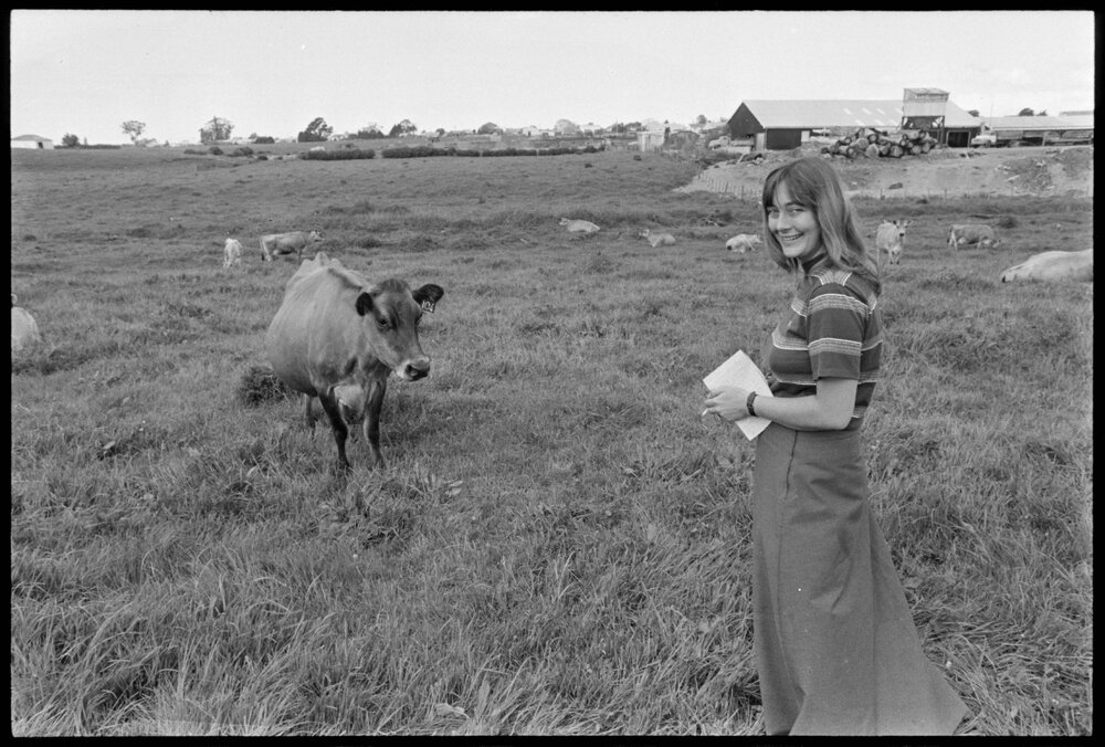 Date26 October 1974Reference Numberphoto gcc-26282DescriptionPedigree Jersey cows on the farm of Mr. D. Marshall, chairman, of the Te Puke Young Farmers' Club. Published 26 October 1974.FormatNegativePhysical Description35mm black-and-white negative (1/9)Photographer/CreatorBay of Plenty Times