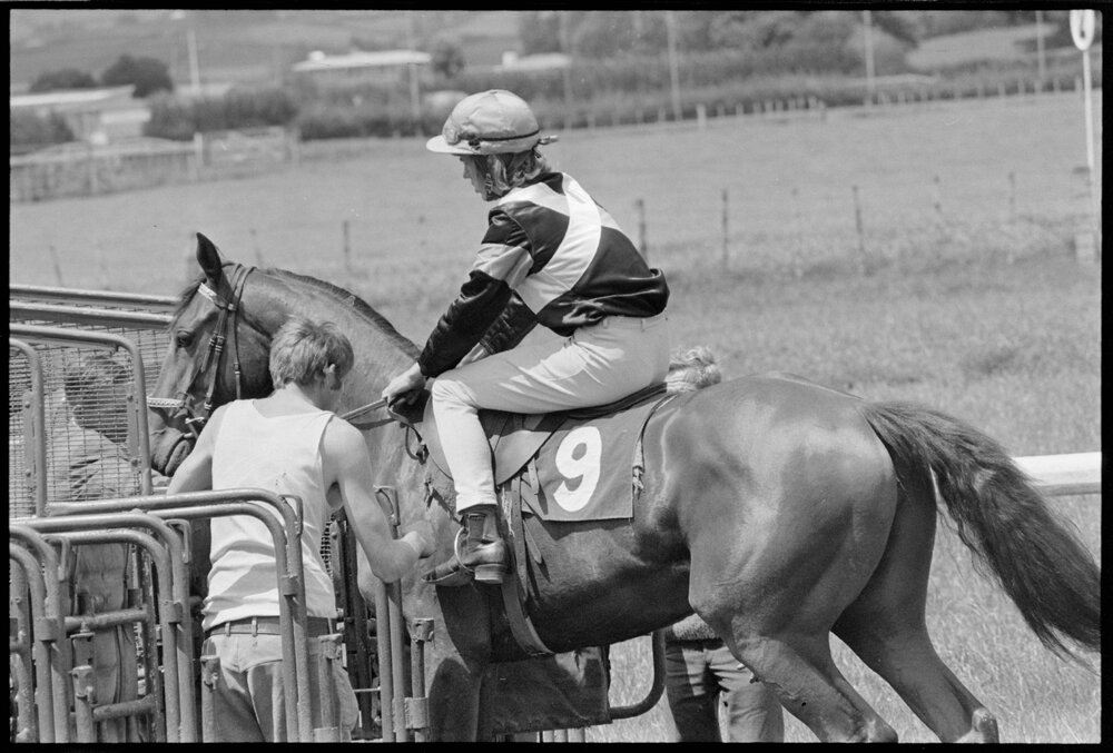 Date30 October 1974Reference Numberphoto gcc-26341DescriptionHorses at the gates, at the racecourse. Published 30 October 1974.FormatNegativePhysical Description35mm black-and-white negative (6/6)Photographer/CreatorBay of Plenty Times