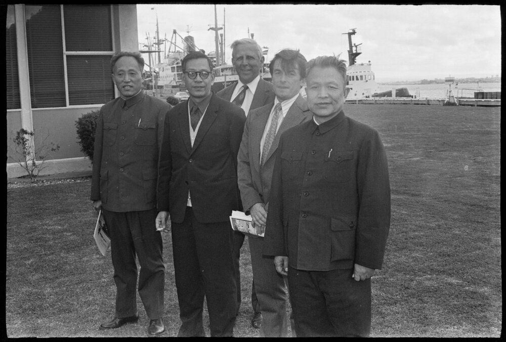 Date31 October 1974Reference Numberphoto gcc-26363DescriptionA party from the People's Republic of China who visited the Port of Tauranga with the chairman of the Bay of Plenty Harbour Board, Mr. K. S. Calder (centre). At the right is the Chinese Minister for Agriculture and Forests, Mr Sha Feng. Published 31 October 1974.FormatNegativePhysical Description35mm black-and-white negative (2/3)Photographer/CreatorBay of Plenty Times