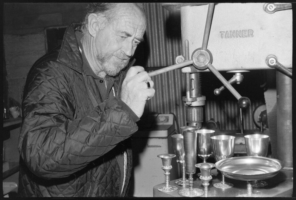 Date31 October 1974Reference Numberphoto gcc-26366DescriptionRetired Mount Maunganui resident, Lyn McKenzie, manufactures objects from spun aluminium at his workshop on Airport Road. Published 31 October 1974.FormatNegativePhysical Description35mm black-and-white negative (2/3)Photographer/CreatorBay of Plenty Times