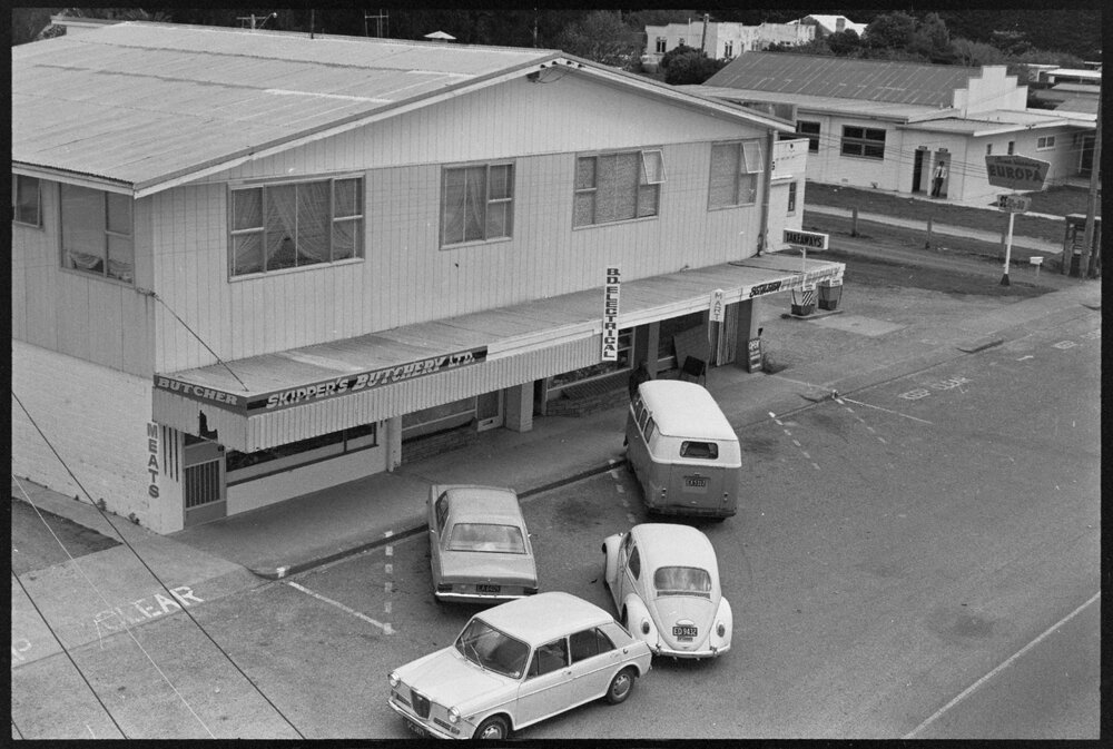 Date1 November 1974Reference Numberphoto gcc-26385DescriptionCars parked outside Bethlehem shops, Skipper's Butchery Ltd. B.D. Electical, Bethlehem Fish Supply, Europa Petrol pumps. Bethlehem Hall is on the right. Published 1 November 1974.FormatNegativePhysical Description35mm black-and-white negative (5/6)Photographer/CreatorBay of Plenty Times
