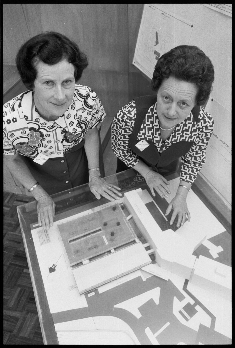 Date2 November 1974Reference Numberphoto gcc-26406DescriptionThe first graduates from the Tauranga Public Hospital's nurse training school, Mrs J. Voss (left) and Mrs E. Quinlivan, study hospital building plans at a first-ever reunion of nurses held in Tauranga this weekend. The two women are the hospital's only graduates from the training school which was established in May, 1943.Published 2 November 1974.FormatNegativePhysical Description35mm black-and-white negative (1/6)Photographer/CreatorBay of Plenty Times