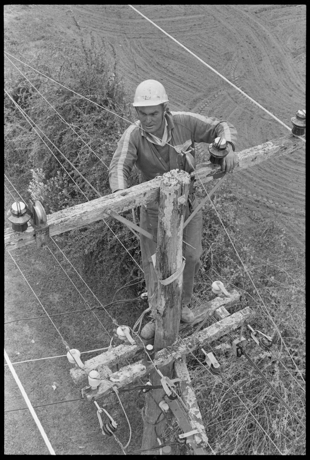Date2 November 1974Reference Numberphoto gcc-26421DescriptionTauranga Electric Power Board maintenance on power lines, pictured is Alan Johns repairing damaged lines. Published 2 November 1974.FormatNegativePhysical Description35mm black-and-white negative (1/6)Photographer/CreatorBay of Plenty Times