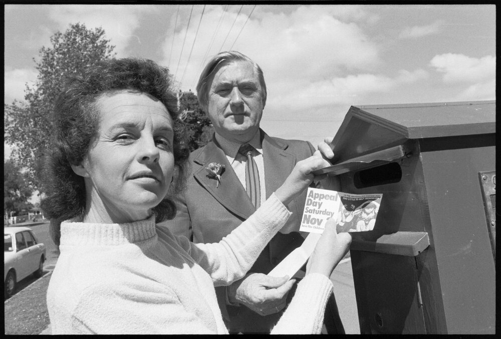 Date1 November 1974Reference Numberphoto gcc-26428DescriptionAnnual appeal for the Save the Children Fund. Pictured: Joan Laird (assistant promotion convener) and R. A. Owens (Tauranga Mayor and SCF patron). Published 1 November 1974.FormatNegativePhysical Description35mm black-and-white negative (2/6)Photographer/CreatorBay of Plenty Times
