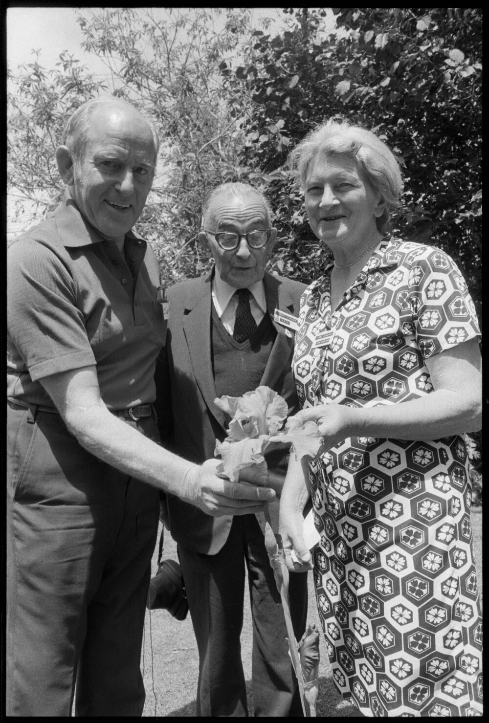 Date4 November 1974Reference Numberphoto gcc-26473DescriptionMr H. A. Fischer (centre)along with other members of the American Iris Society inspect irises at the Cambridge Road gardens of Mr and Mrs Collins (pictured) in Tauranga. FormatNegativePhysical Description35mm black-and-white negative (4/9)Photographer/CreatorBay of Plenty Times