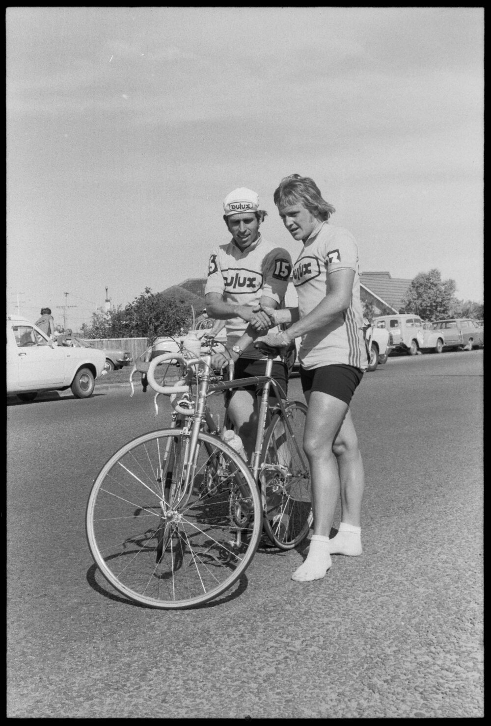 Date5 November 1974Reference Numberphoto gcc-26498DescriptionMike Hughes of Southland, winner of second stage of Dulux six-day road cycling tour into Tauranga. FormatNegativePhysical Description35mm black-and-white negative (5/12)Photographer/CreatorBay of Plenty Times