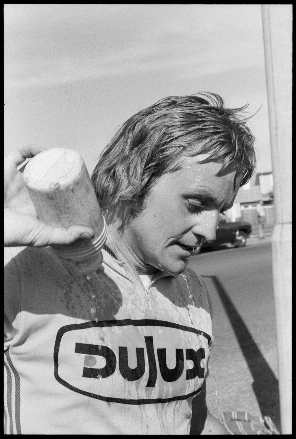 Date5 November 1974Reference Numberphoto gcc-26504DescriptionMike Hughes of Southland, winner of second stage of Dulux six-day road cycling tour into Tauranga. FormatNegativePhysical Description35mm black-and-white negative (11/12)Photographer/CreatorBay of Plenty Times