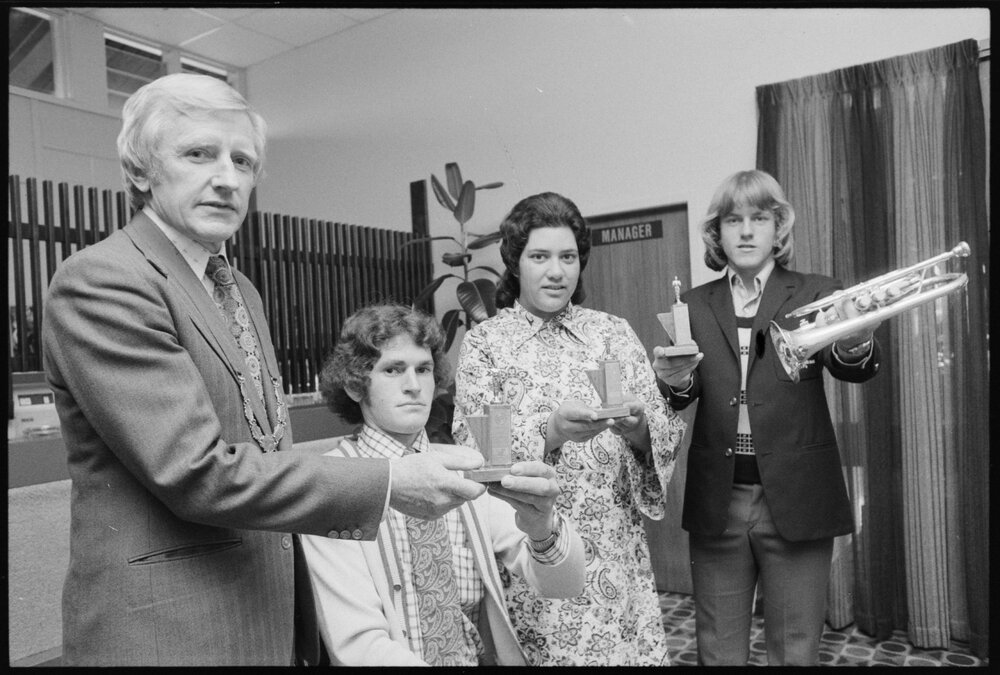 Date5 November 1974Reference Numberphoto gcc-26519DescriptionPresident of Ōtūmoetai Rotary Club Mr Murray (left) presents Rotary Youth Acheivement Awards to Patrick Boucher, Rawinia Tutaki and John Rodgers (right). Published 5 November 1974.FormatNegativePhysical Description35mm black-and-white negative (2/3)Photographer/CreatorBay of Plenty Times