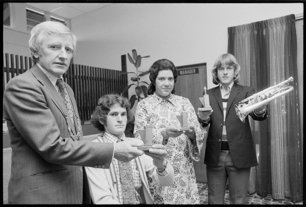 Date5 November 1974Reference Numberphoto gcc-26520DescriptionPresident of Ōtūmoetai Rotary Club Mr Murray (left) presents Rotary Youth Acheivement Awards to Patrick Boucher, Rawinia Tutaki and John Rodgers (right). Published 5 November 1974.FormatNegativePhysical Description35mm black-and-white negative (3/3)Photographer/CreatorBay of Plenty Times