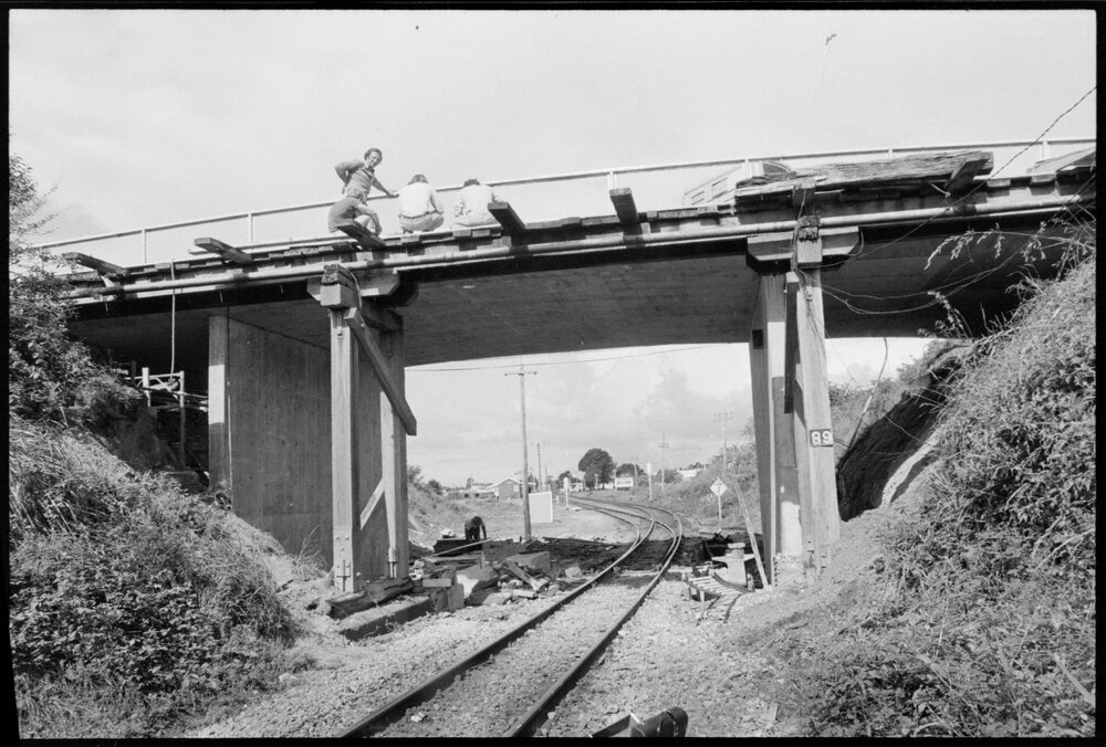 Date6 November 1974Reference Numberphoto gcc-26536DescriptionThe span of the new concrete Station Road bridge in Te Puke. Published 6 November 1974.FormatNegativePhysical Description35mm black-and-white negative (1/6)Photographer/CreatorBay of Plenty Times
