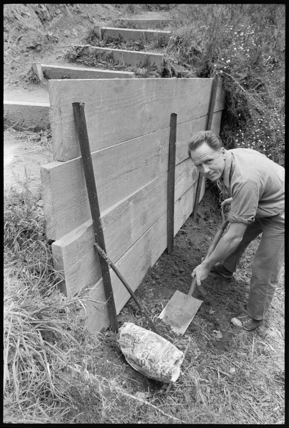 Date6 November 1974Reference Numberphoto gcc-26550DescriptionPaul Young works on a retaining wall at the Kaiate Falls track. Published 6 November 1974.FormatNegativePhysical Description35mm black-and-white negative (3/3)Photographer/CreatorBay of Plenty Times
