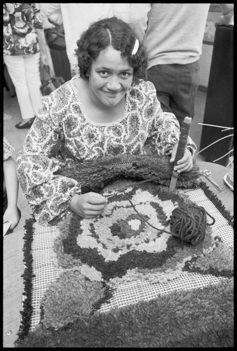 Date8 November 1974Reference Numberphoto gcc-26625DescriptionPictured here completing a rug, using the rug hooking technique, is Hine Brown, a pupil at the Kākā Street School. The pupils and teachers held a fund-raising venture at the school this morning to enable them to buy craft materials, including a spinning wheel. Published 8 November 1974.FormatNegativePhysical Description35mm black-and-white negative (6/9)Photographer/CreatorBay of Plenty Times