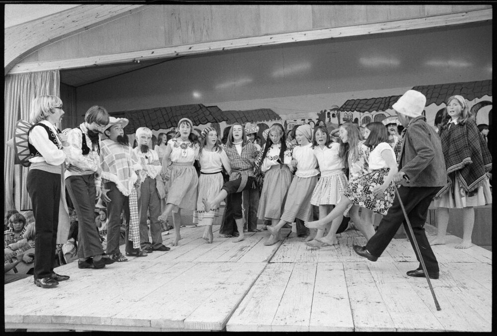 Date8 November 1974Reference Numberphoto gcc-26629DescriptionForm 1 pupil, Maria Van Bakel, is one of the many colourful characters who can be met in the Mount Maunganui Intermediate School's pantomime. Published 11 November 1974.FormatNegativePhysical Description35mm black-and-white negative (1/3)Photographer/CreatorBay of Plenty Times