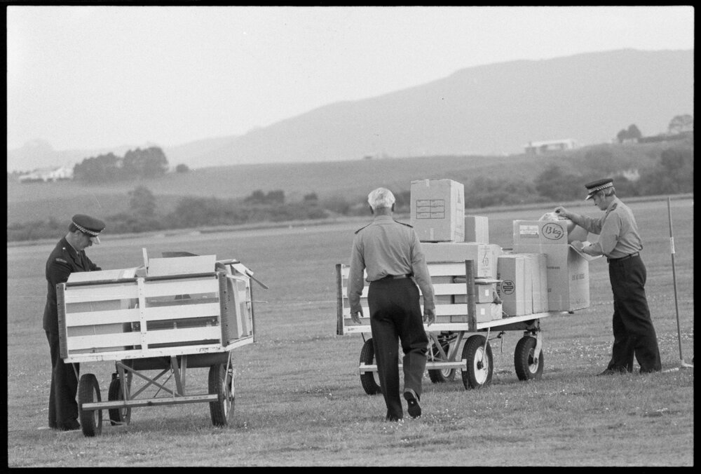 Date9 November 1974Reference Numberphoto gcc-26647DescriptionMount Maunganui policemen check on cargo from the NAC Friendship in the middle of the airfield last evening following a bomb hoax call. Published 9 November 1974.FormatNegativePhysical Description35mm black-and-white negative (1/3)Photographer/CreatorBay of Plenty Times