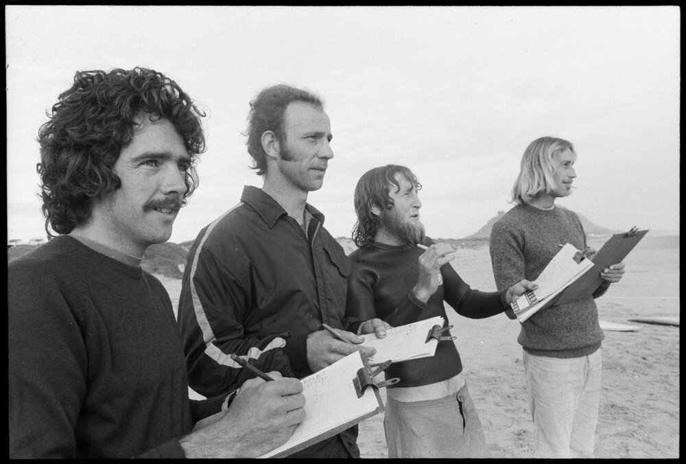 Date11 November 1974Reference Numberphoto gcc-26653DescriptionFor the first time in three years an organised surfing competition was held at the Mount on Saturday. Board riders belonging to the Bay Surfers Club took part in a four-foot inconsistent surf. Marking riders' performances are the judges, from left, Dennis Millar, Arthur King, Pat Bishop and Bruce McIntosh. Published 11 November 1974.FormatNegativePhysical Description35mm black-and-white negative (1/3)Photographer/CreatorBay of Plenty Times