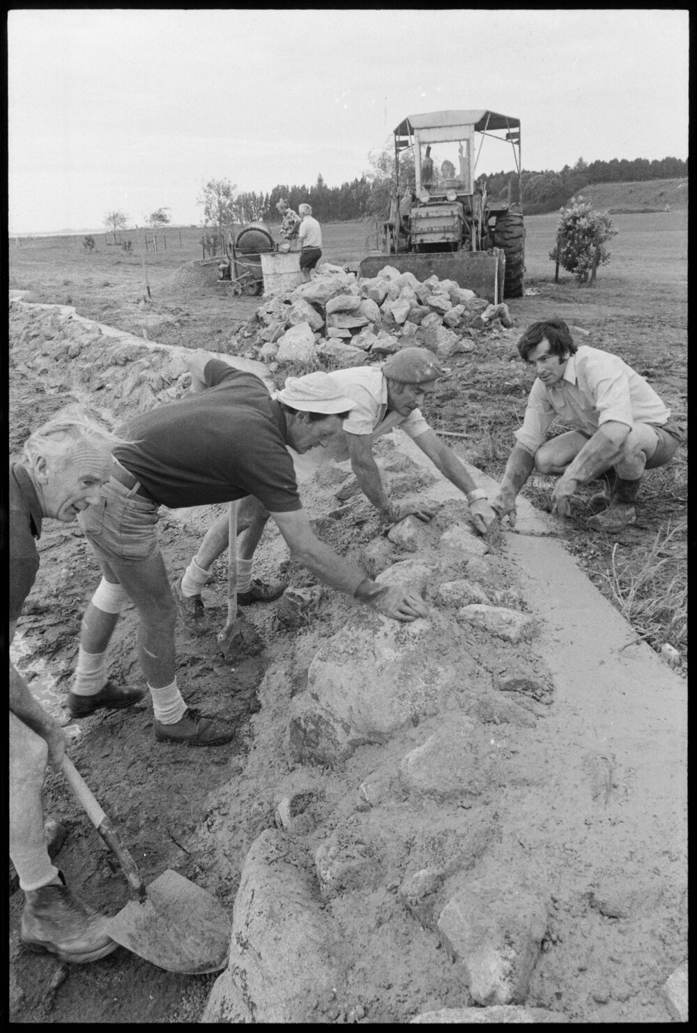 Date11 November 1974Reference Numberphoto gcc-26661DescriptionWorking on a community service project are these members of the Ōtūmoetai Rotary Club. The men are building a wall to contain the sea in an effort to keep Fergusson Park dry. From left to right are Messrs T. Murray, T. Flawn, P. O'Brien, W. Moulton, and I. Boagey. Published 11 November 1974.FormatNegativePhysical Description35mm black-and-white negative (3/8)Photographer/CreatorBay of Plenty Times