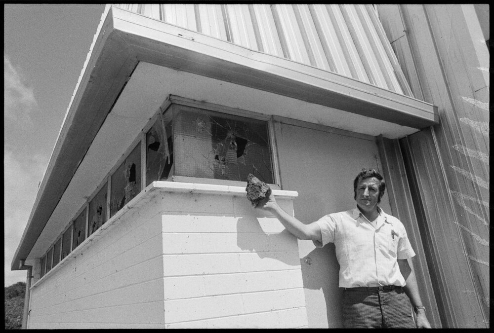 Date11 November 1974Reference Numberphoto gcc-26675DescriptionIndicating a part of the damage done to one of the pumping stations at Ōtūmoetai over the weekend is Mr Horan. Over $100 has been spent so far replacing broken windows and doors. Published 11 November 1974.FormatNegativePhysical Description35mm black-and-white negative (3/9)Photographer/CreatorBay of Plenty Times