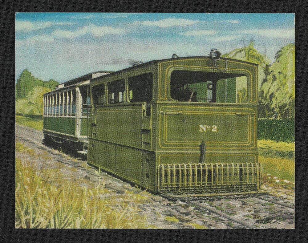 A.H. & A.W. Reed Publishers, Sanitarium swap card: North Shore Steam Tram (1968). Pae Korokī, accessed 08/04/2026, https://paekoroki.tauranga.govt.nz/nodes/view/112680