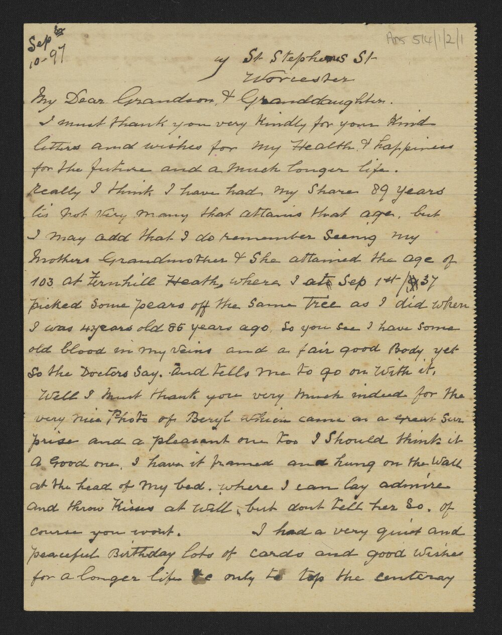 Letter from Alfred John Gegg to his Grandson and Granddaughter, Sep 1937