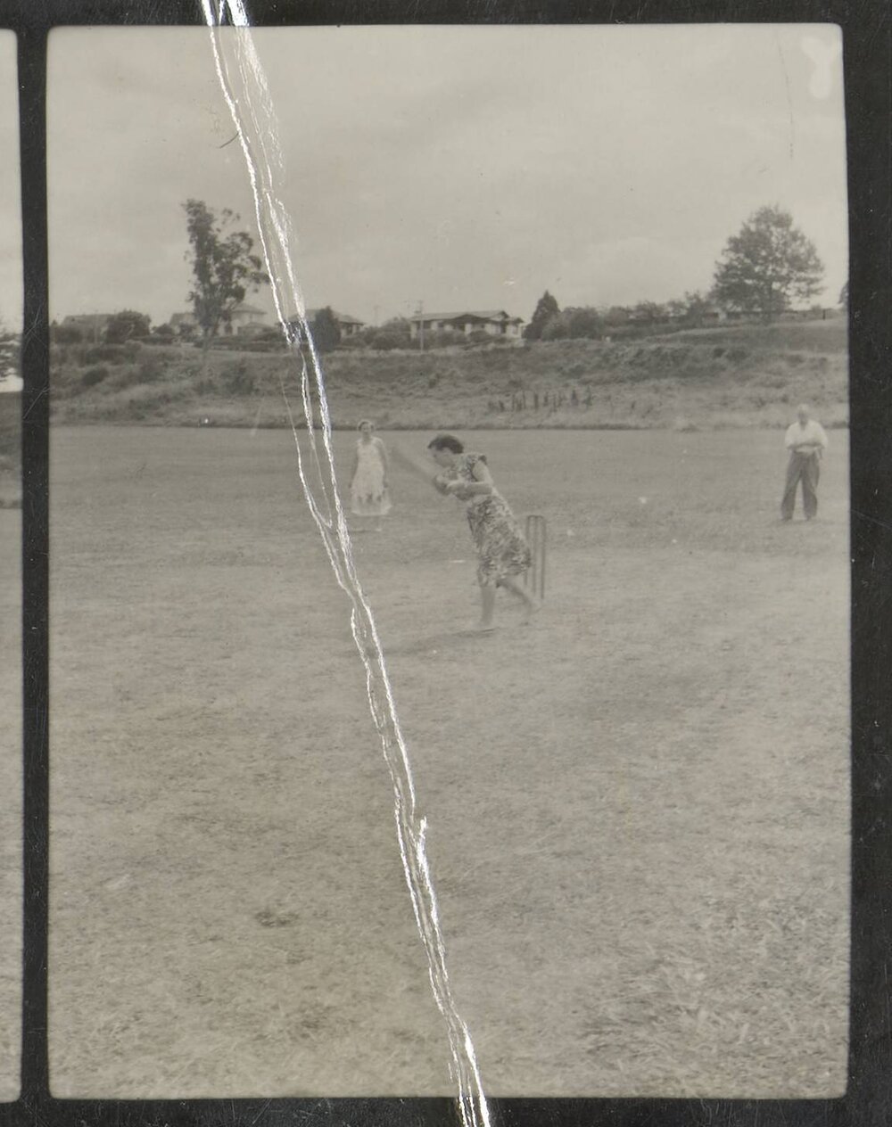 Datec. 1950-1975Reference NumberPhoto 25-024DescriptionLadies Sports Shield trophy cricket match, Memorial Park.