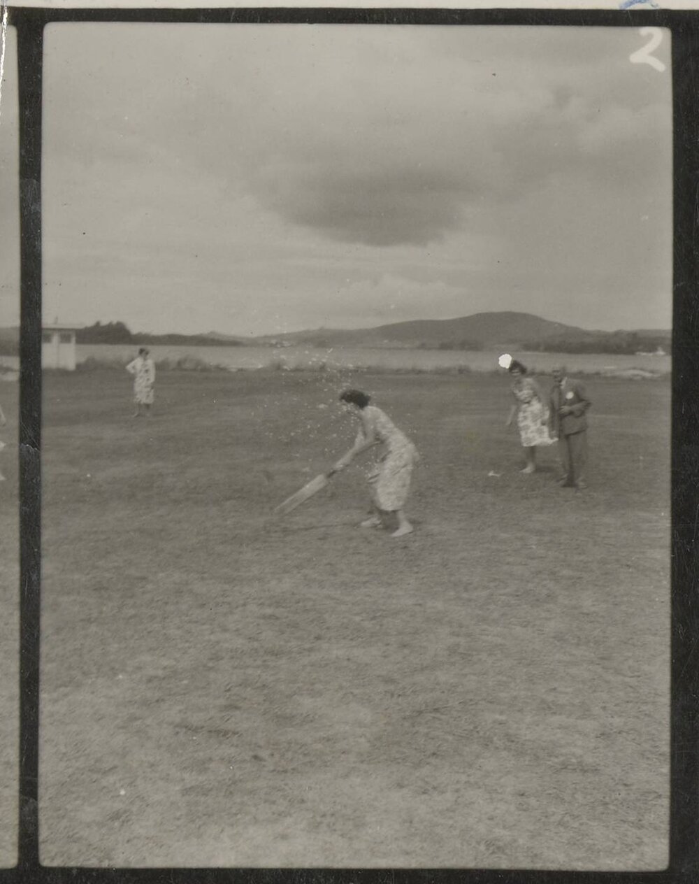 Datec. 1950-1975Reference NumberPhoto 25-018DescriptionLadies Sports Shield trophy cricket match, Memorial Park.
