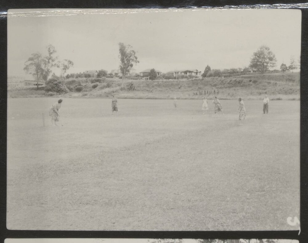 Datec. 1950-1975Reference NumberPhoto 25-005DescriptionLadies Sports Shield trophy cricket match, Memorial Park.