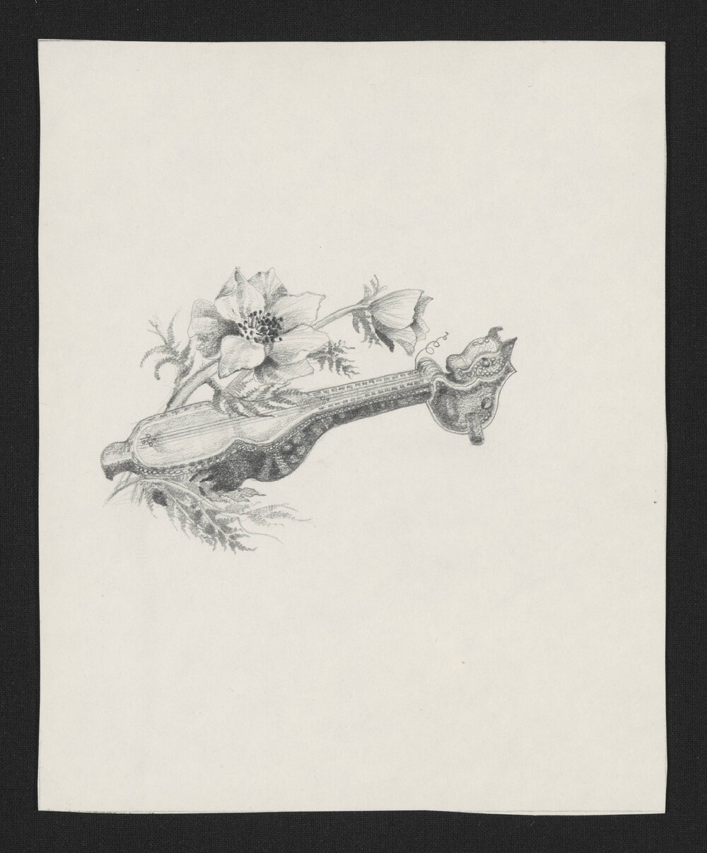 Jordan, Sherryl, 1949-2023, Flower and stringed instrument (c. 1984). Pae Korokī, accessed 04/04/2026, https://paekoroki.tauranga.govt.nz/nodes/view/113029