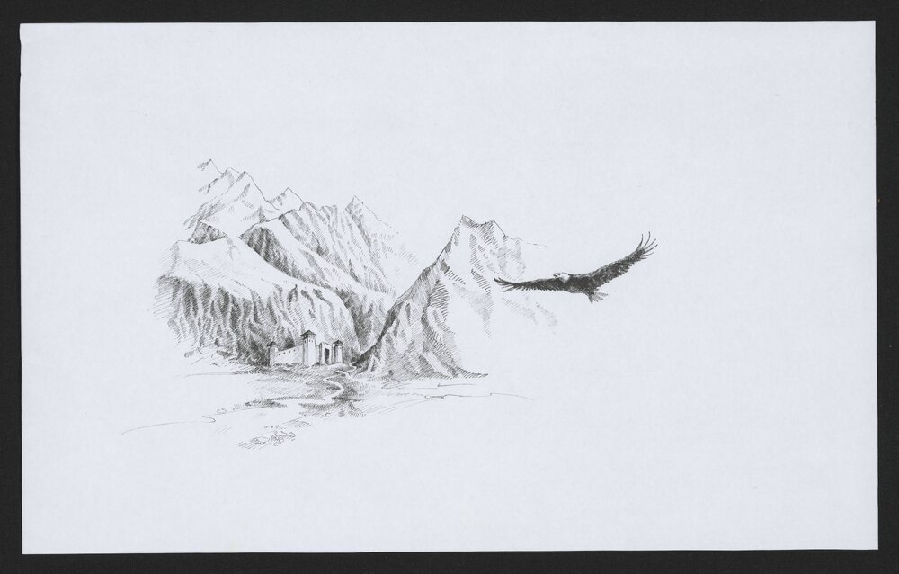 Jordan, Sherryl, 1949-2023, Eagle flying to fortress (c. 2007). Pae Korokī, accessed 04/04/2026, https://paekoroki.tauranga.govt.nz/nodes/view/113039
