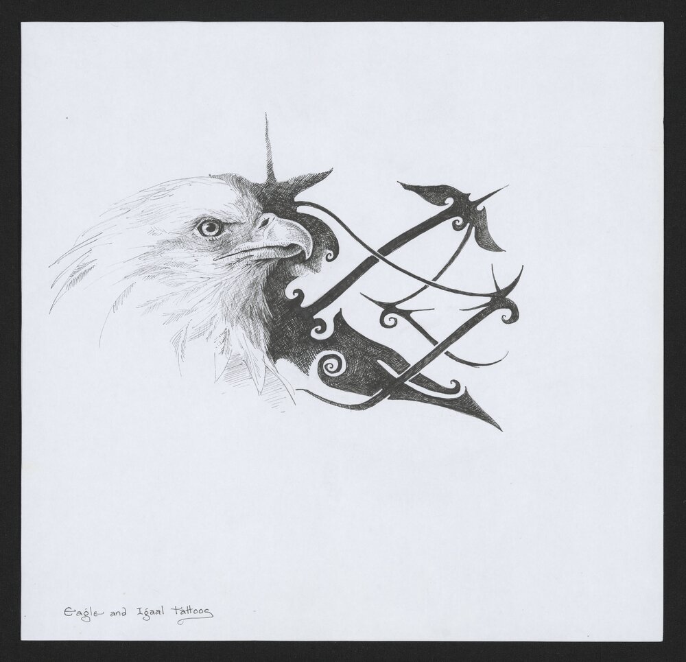 Jordan, Sherryl, 1949-2023, Eagle and Igaal tattoos (c. 2007). Pae Korokī, accessed 04/04/2026, https://paekoroki.tauranga.govt.nz/nodes/view/113040