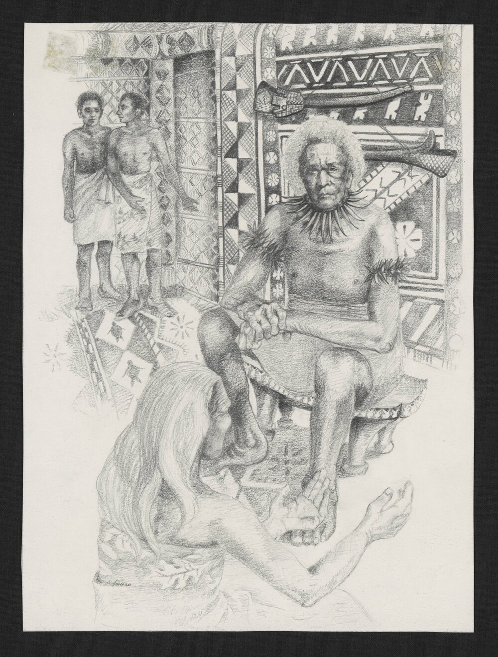 Date1981Reference NumberAms 508/2/7/4DescriptionIllustration for 'The Silent One', 1981, page 58.