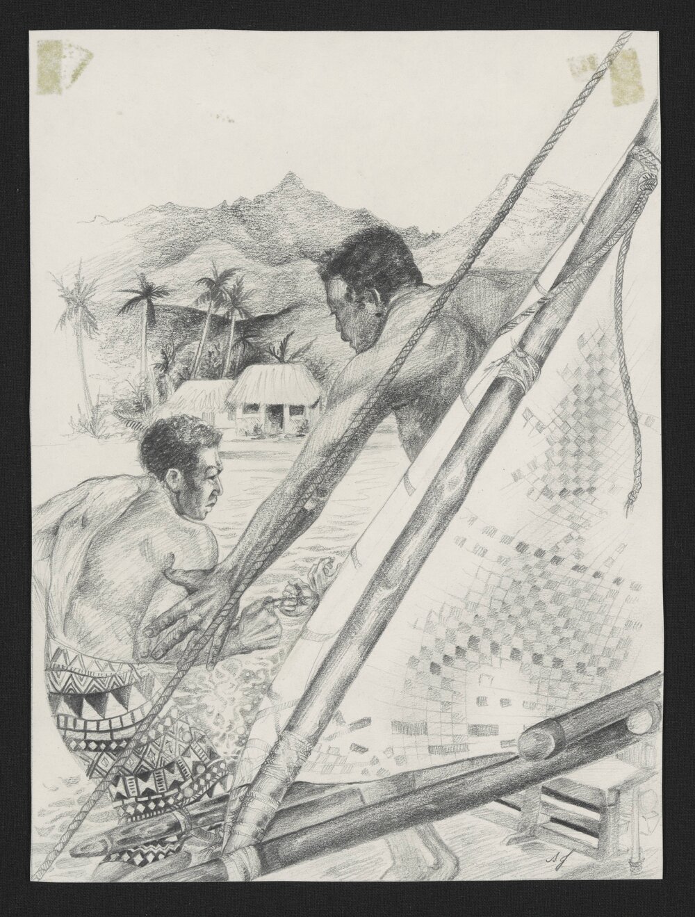 Jordan, Sherryl, 1949-2023, Two men on sailboat (1981). Pae Korokī, accessed 04/04/2026, https://paekoroki.tauranga.govt.nz/nodes/view/113061