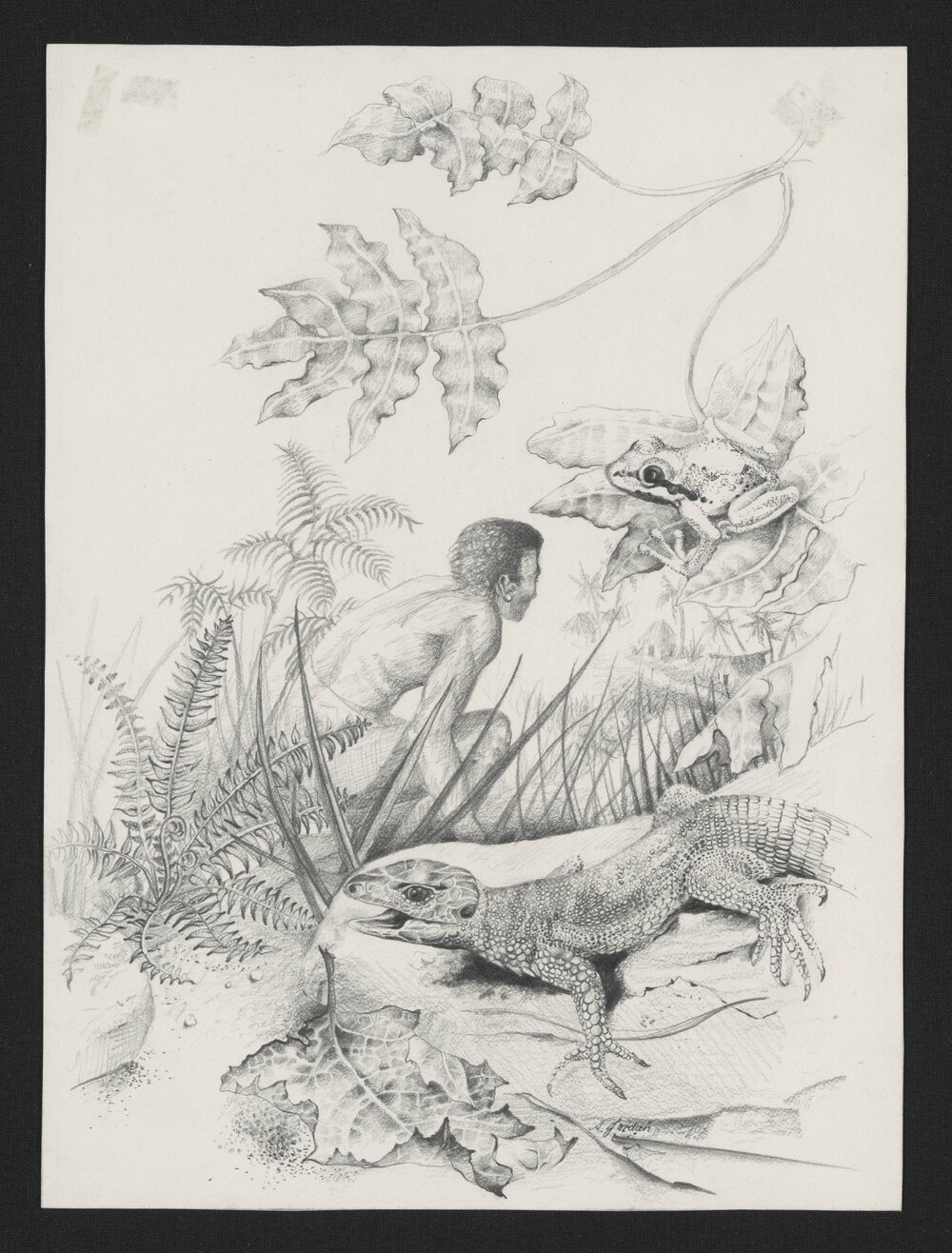 Jordan, Sherryl, 1949-2023, Boy in forest scene with animals (1981). Pae Korokī, accessed 04/04/2026, https://paekoroki.tauranga.govt.nz/nodes/view/113062
