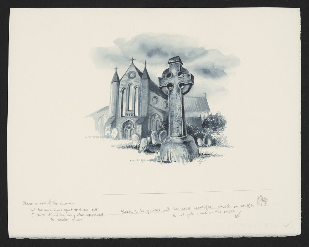Jordan, Sherryl, 1949-2023, Church with Celtic cross (c. 2013). Pae Korokī, accessed 04/04/2026, https://paekoroki.tauranga.govt.nz/nodes/view/113088