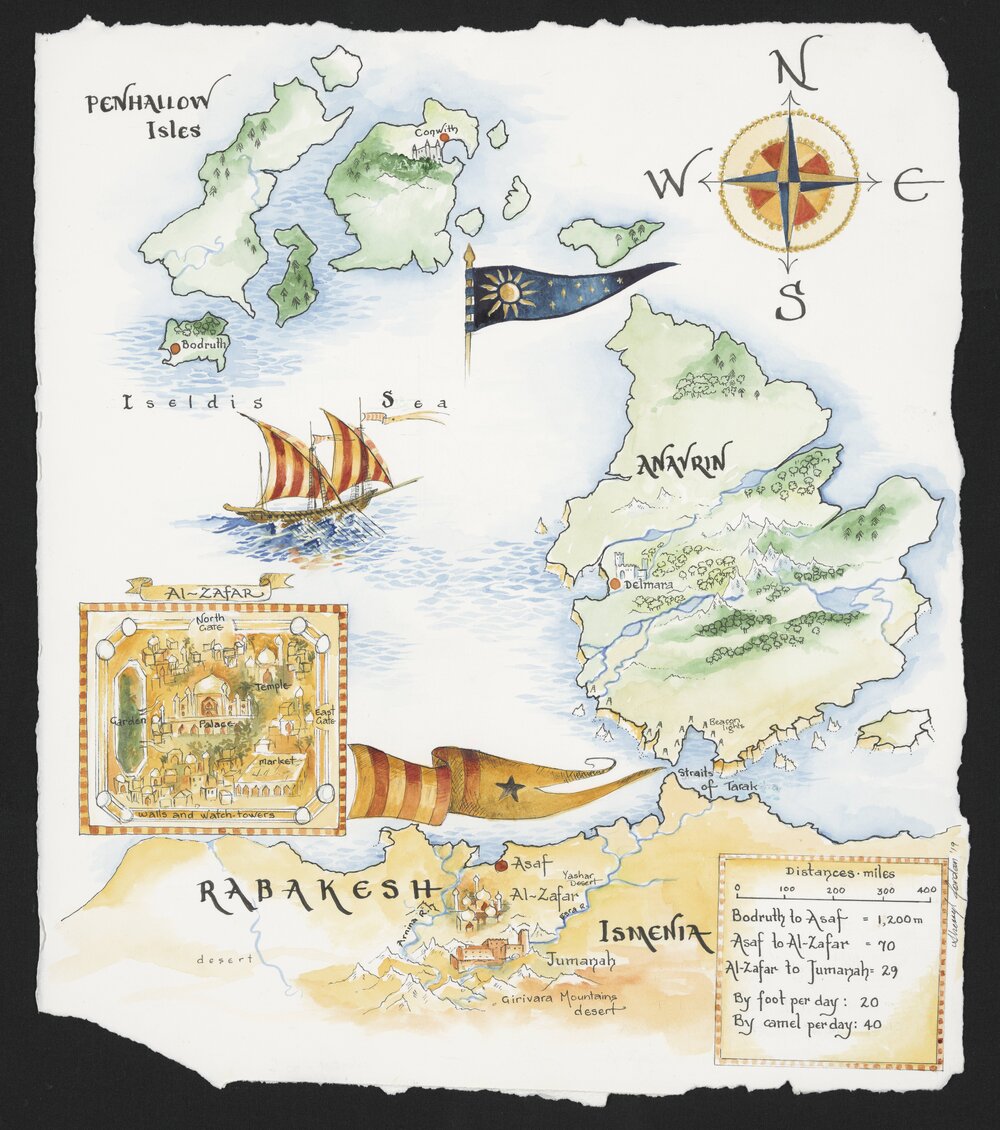 Jordan, Sherryl, 1949-2023, Illustrated map of Liam’s journey to Algiers (c. 2013). Pae Korokī, accessed 04/04/2026, https://paekoroki.tauranga.govt.nz/nodes/view/113092