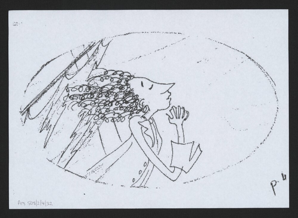 Jordan, Sherryl, 1949-2023, Photocopy of sketch of female thinking (c. 2010). Pae Korokī, accessed 04/04/2026, https://paekoroki.tauranga.govt.nz/nodes/view/113120
