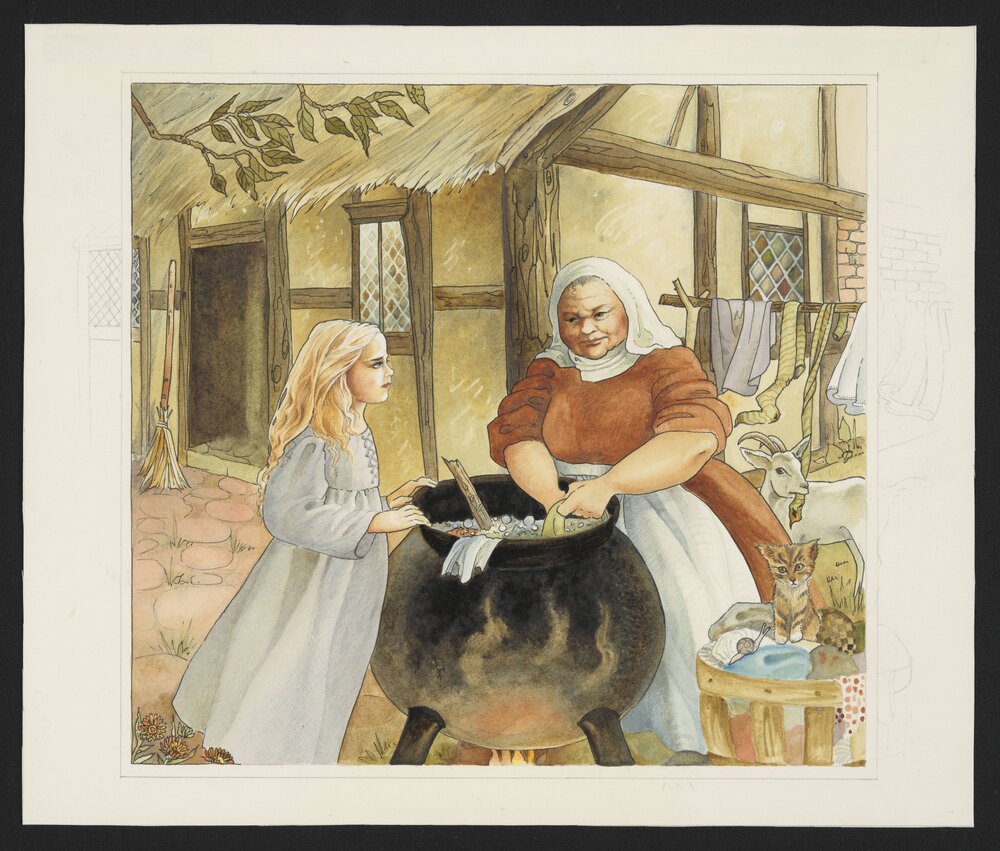 Jordan, Sherryl, 1949-2023, Illustration for The Other Side of Midnight - Washing in cauldron (1990). Pae Korokī, accessed 04/04/2026, https://paekoroki.tauranga.govt.nz/nodes/view/113153