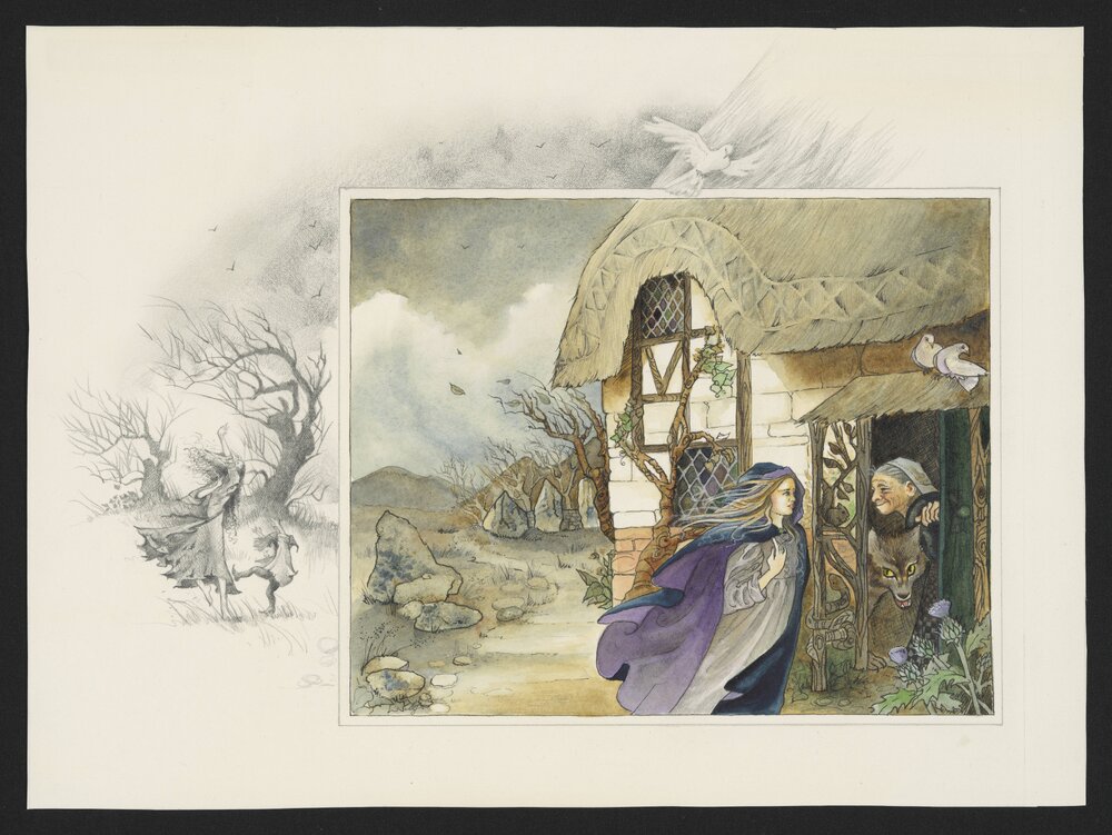 Jordan, Sherryl, 1949-2023, Illustration for The Other Side of Midnight - Girl in cape at door (1990). Pae Korokī, accessed 04/04/2026, https://paekoroki.tauranga.govt.nz/nodes/view/113155