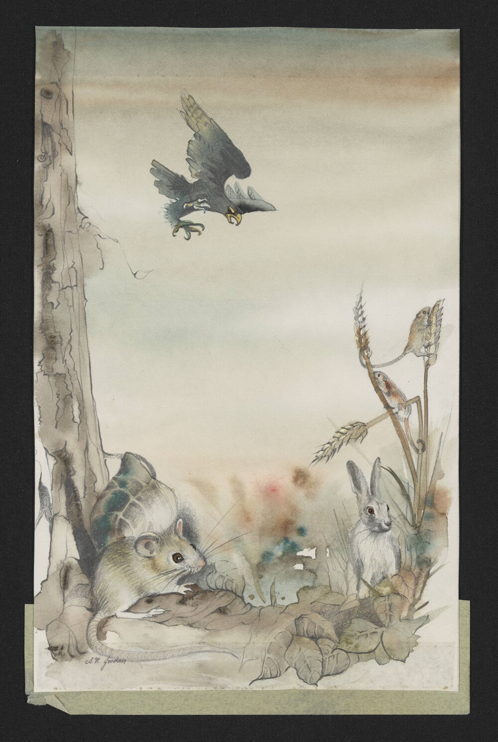 Jordan, Sherryl, 1949-2023, Eagle, mouse and rabbit (c. 1970-c. 2023). Pae Korokī, accessed 04/04/2026, https://paekoroki.tauranga.govt.nz/nodes/view/113162