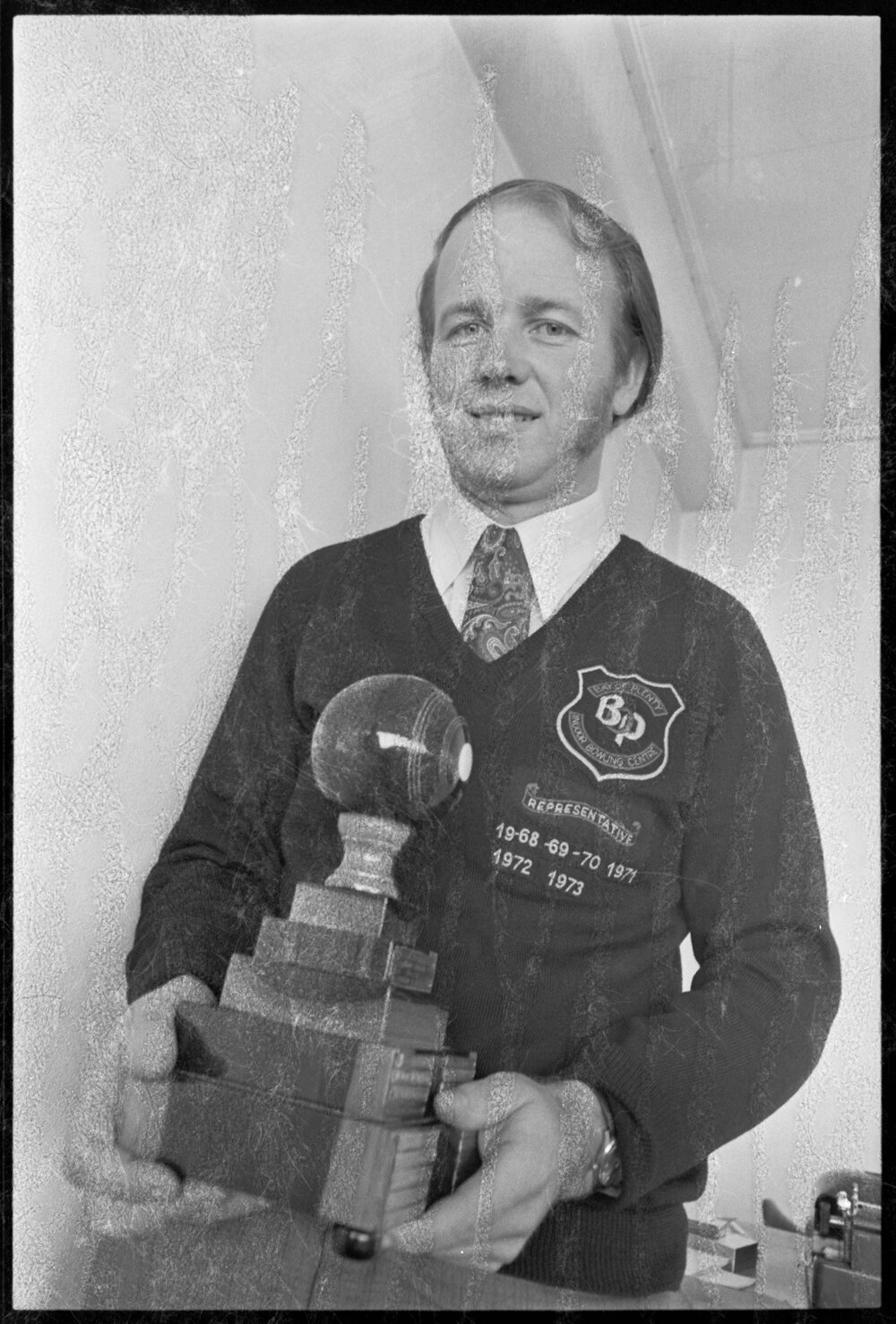 Indoor bowls. Graeme Dunlop with the New Zealand Indoor Bowling Federation's singles trophy for 1973. (22 June 1973). Pae Korokī, accessed 07/04/2026, https://paekoroki.tauranga.govt.nz/nodes/view/113239