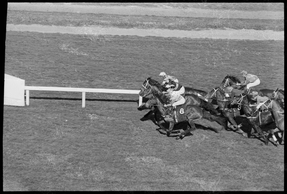 Horse racing. Runners by the finish line at the Bay of Plenty Racing Club's Saturday meeting in Tauranga. (25 June 1973). Pae Korokī, accessed 07/04/2026, https://paekoroki.tauranga.govt.nz/nodes/view/113253