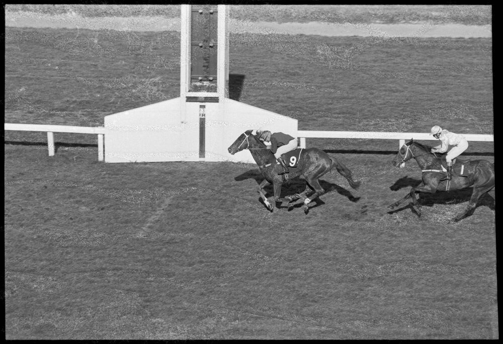 Horse racing. Runners by the finish line at the Bay of Plenty Racing Club's Saturday meeting in Tauranga. (25 June 1973). Pae Korokī, accessed 07/04/2026, https://paekoroki.tauranga.govt.nz/nodes/view/113254