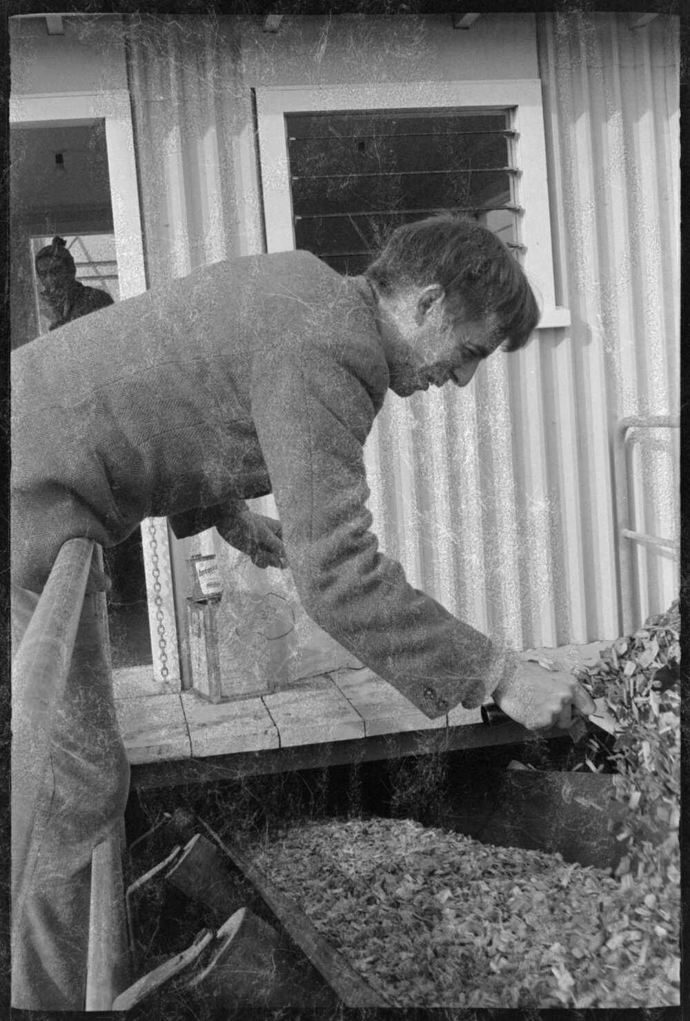 Unidentified man sampling wood chips (?) from a conveyor belt. (June 1973). Pae Korokī, accessed 07/04/2026, https://paekoroki.tauranga.govt.nz/nodes/view/113309
